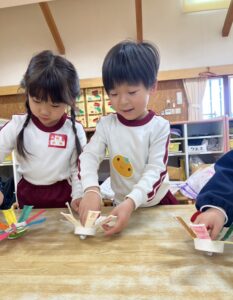 こままわし、ふくわらい、はねつき、くじびき、おみくじ、おとしだま・・・などなどたくさんのコーナーで楽しみました。