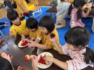 そしておやつの時間は、ケーキ作り! ばら・ひまわりぐみはケーキを作ったよ!