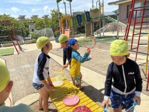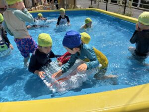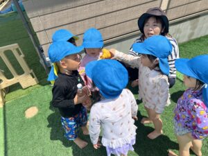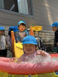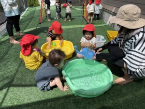 お水を触ってご機嫌なひよこぐみさん🐤 夏満喫の子どもたちでした☆彡