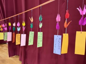 ばらぐみは折り鶴を折って、短冊に平和の願いを書きました。 「おともだちとなかよくします」 「けんかはしません」 「みんなにやさしくします」