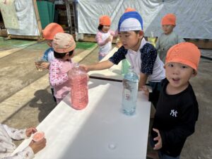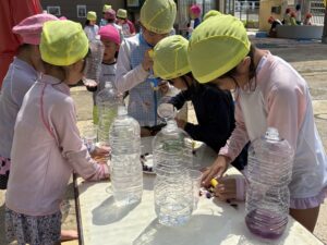 お花の色水あそび、きれいな色のジュースができたよ❤