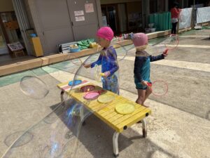 「みてみて~しゃぼん玉、大きいのができたよ!」