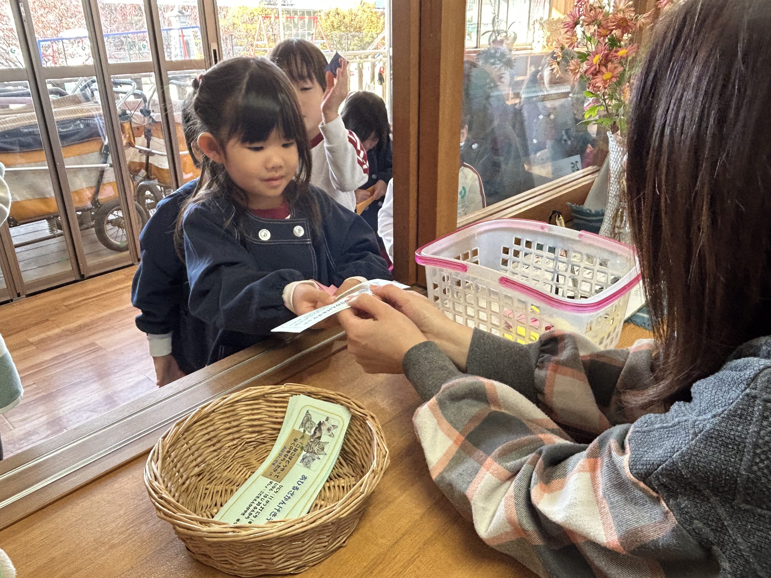 お餅がつきあがると、ひまわりぐみさんとばらぐみさんで丸めます。 粉を手に付けて、くるくる丸めていくよ! 「おもちのびたよ~」 「おもちめっちゃのびるぅ❤」 と大盛り上がり!!