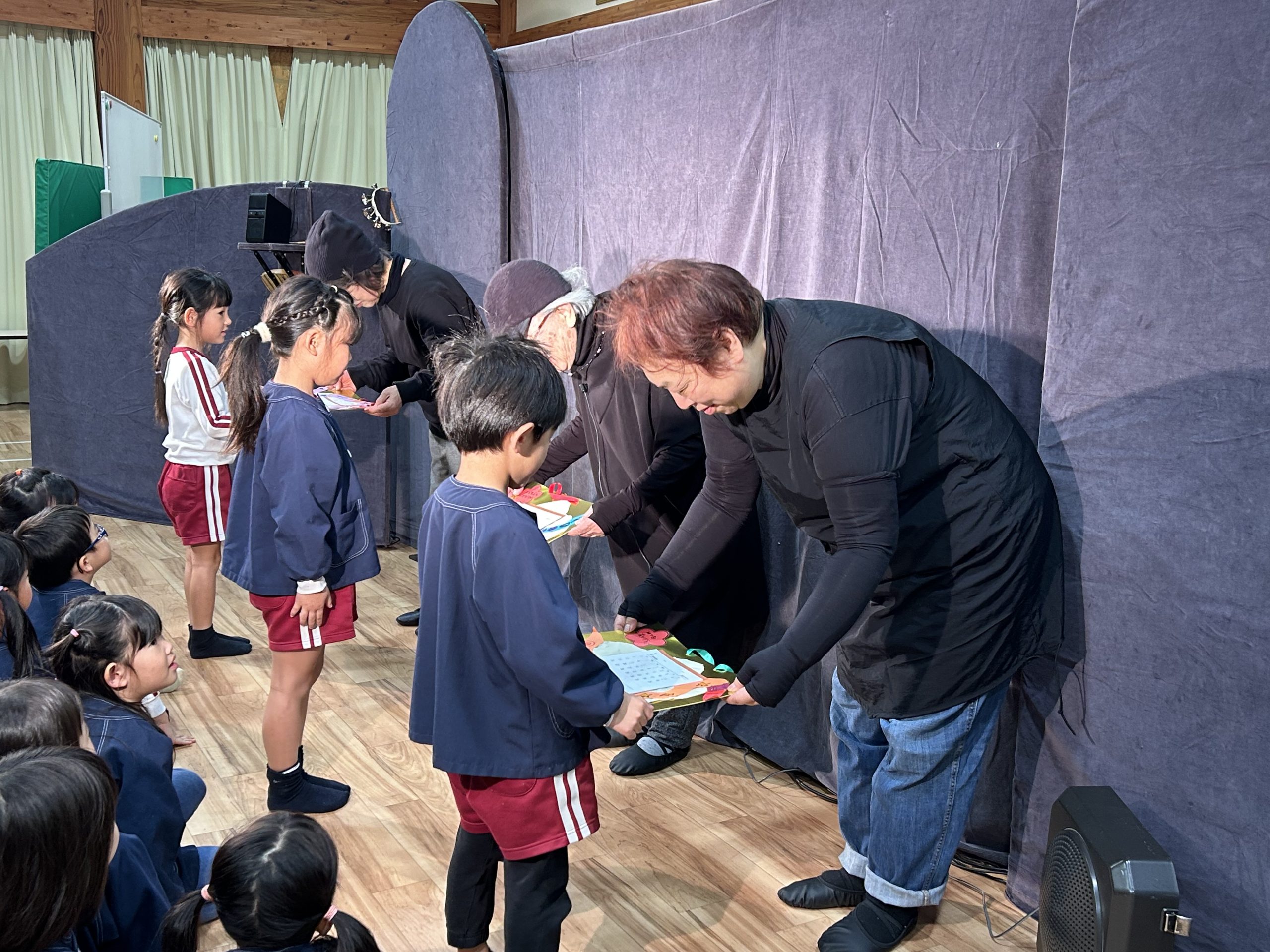 最後は民生委員さんにお礼を言って手作りの来年のカレンダーをプレゼント! 来年もまたよろしくお願いします。