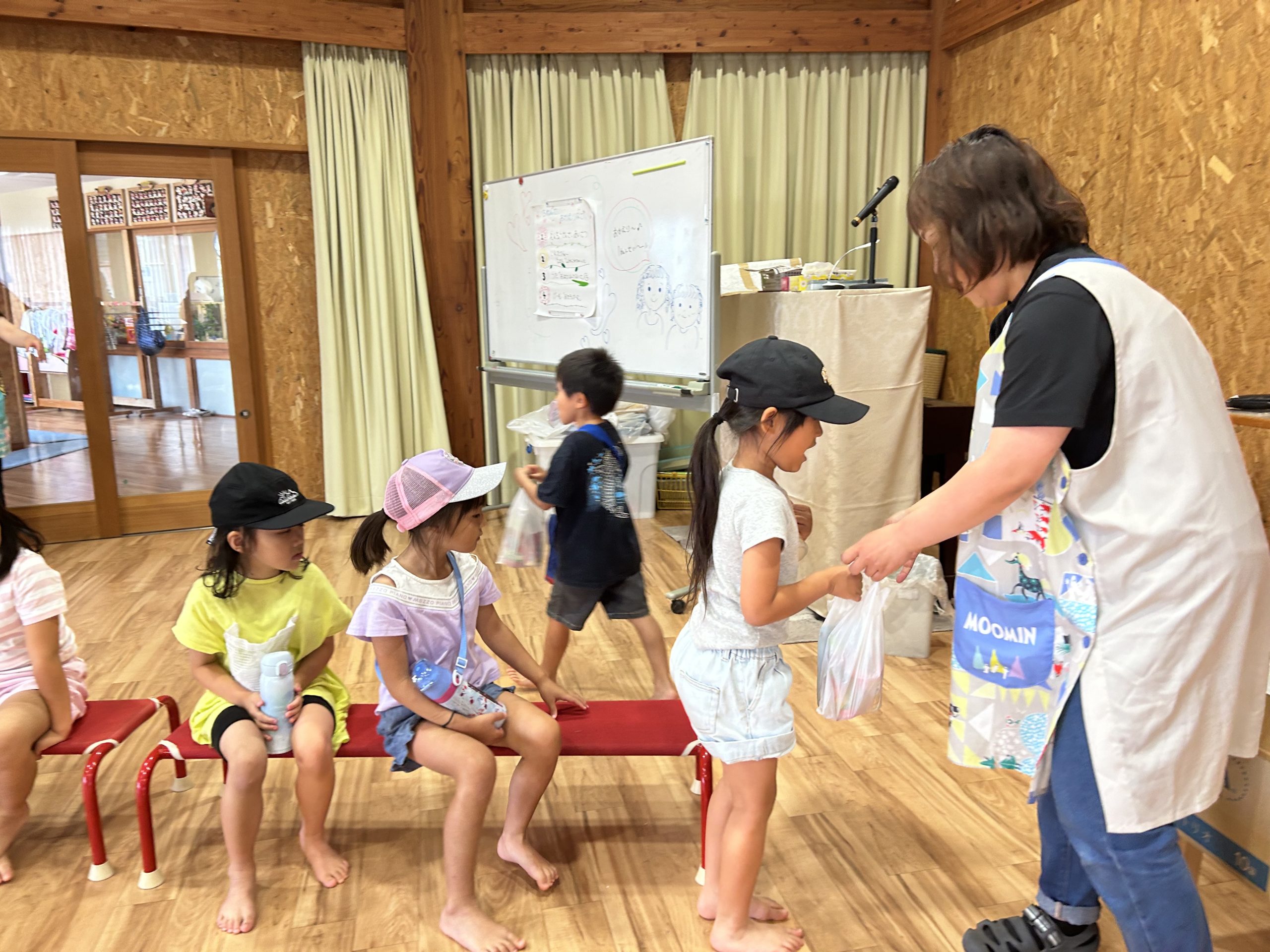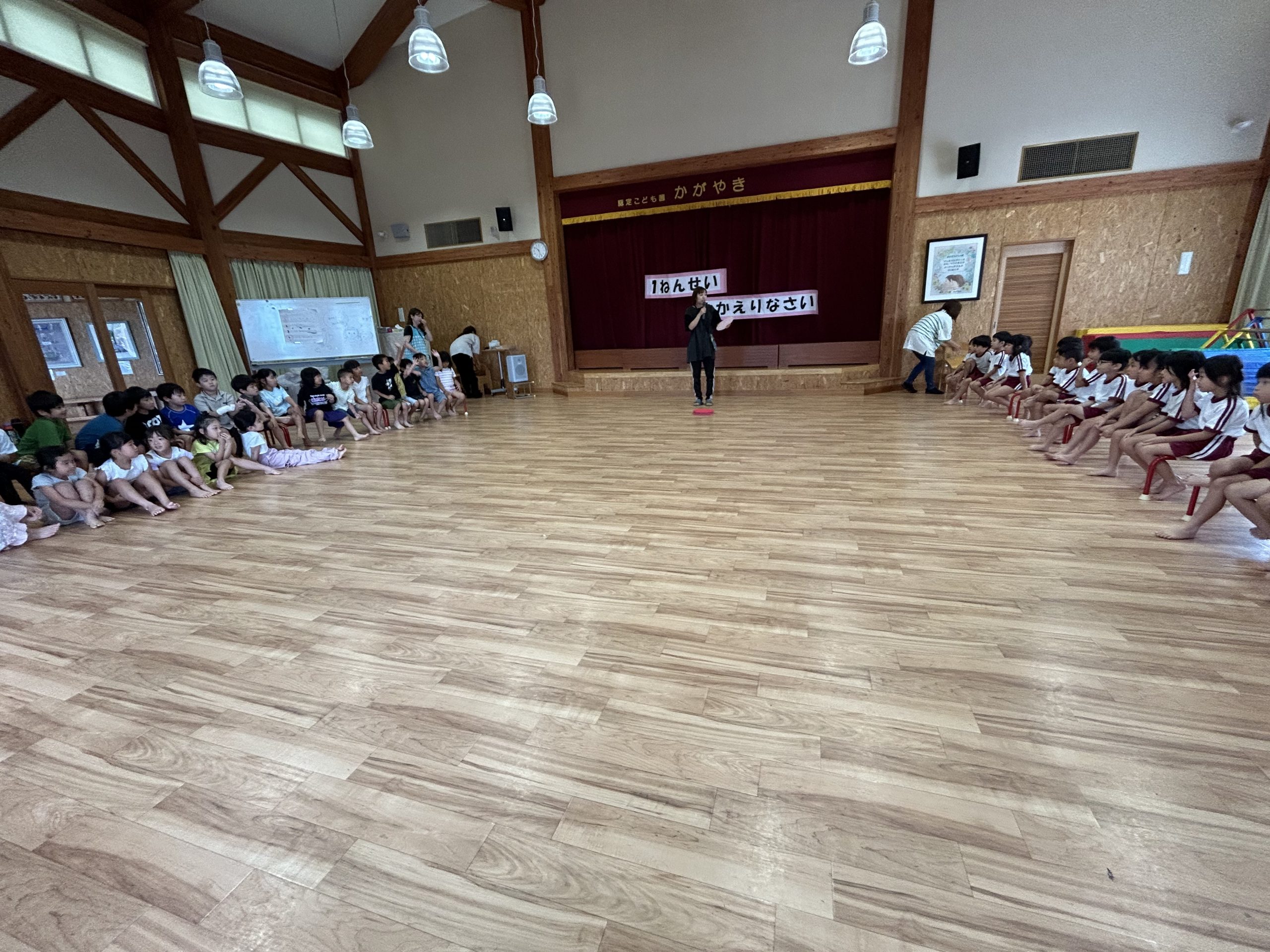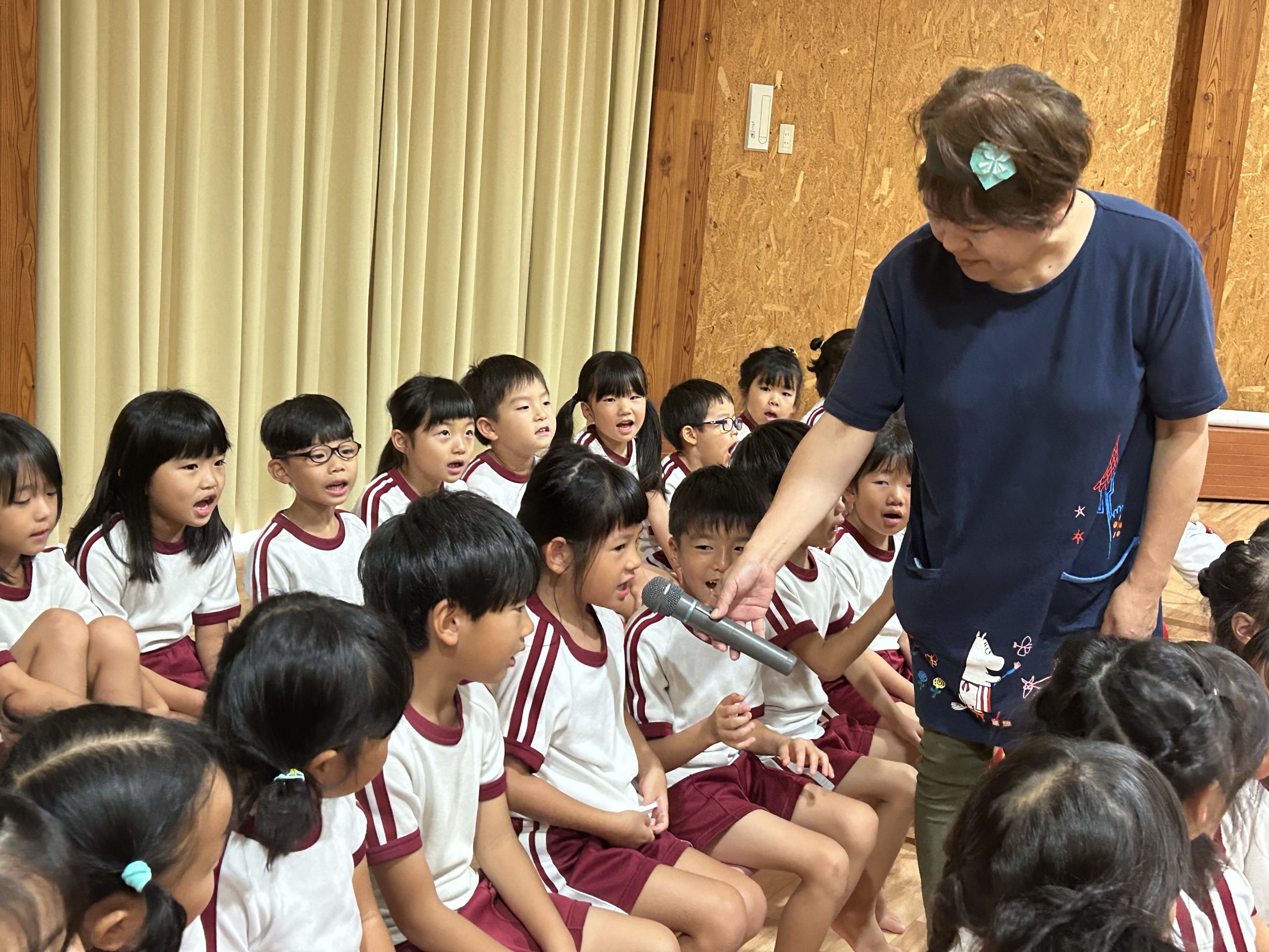 今日はばらぐみさんが野呂山に行って、『ろくろ体験』をします。 バスに乗って野呂山にしゅっぱーつ!!乳児組の小さいお友だちもみんなを見送ってくれたよ。 グネグネ山道をバスに乗って約30分!到着!! ビジターセンターに行っていよいよ『ろくろ体験』。 陶芸用の土は造形教室で触ったり、好きな物を作ったことはあるけど、ろくろをくるくる回しながらお皿を作ってみるのは初めて✨ ちょっぴり緊張しながら、お皿を作ってみました! 終わったら、広場に出てみんなでお弁当たべるよ。今日のお弁当は給食をパックに詰めてもらって食べます。 「おいし~い💛」 食べ終わった後は、アスレチックで遊んだよ。いつもとは違う遊具でみんな大はしゃぎ✩ アスレチックで遊んだ後は、野呂山山頂を散策します。氷池にはたくさんのコイがいたよ! 次は歩いて少し離れた展望台に行ってみました。山の上から見る景色はいつもの町と違って見えてとってもきれいだったね! 子どもたちも山から見える海を見て 「きれい!!」と口々に言っていました。 少し紅葉してきている木が見れたり、秋の空を眺めてうろこ雲を見つけたり、自然と触れ合えたとても楽しい1日でした。 |